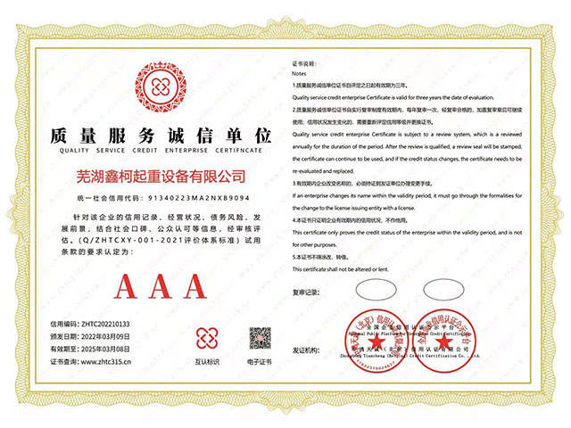 質(zhì)量服務(wù)誠信單位AAA